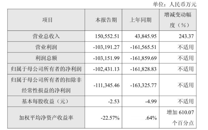 2025年营收发达亮眼,全年完了营收15.06亿元,同比增长243.37%;归母净赔本为10.24亿元,较上年同时赔本幅度收窄36.70%,指标状态握续改善。