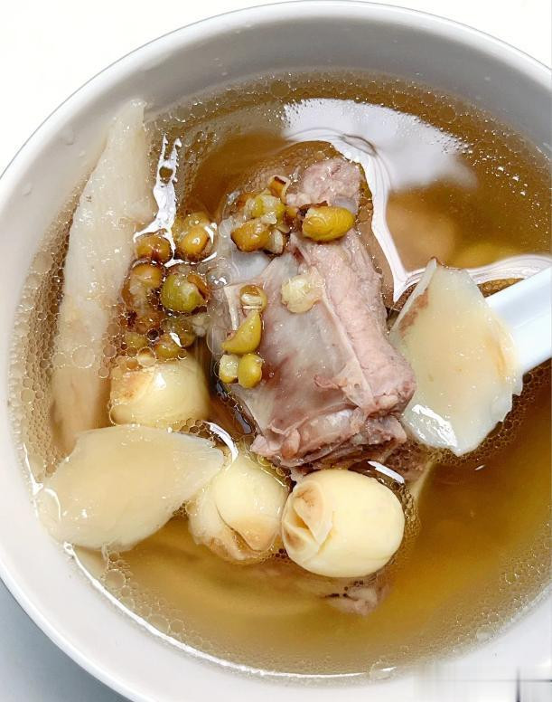 食材:排骨、绿豆、干山药、莲子、百合、陈皮、生姜、盐