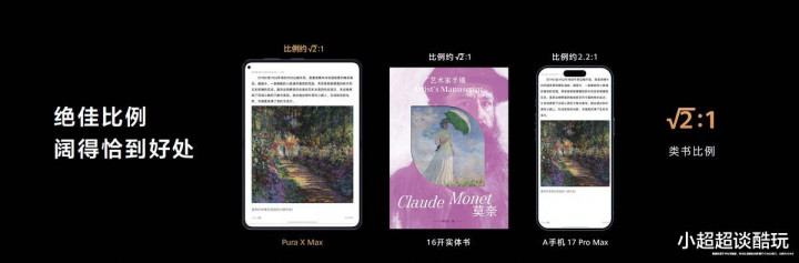除了指纹按键的黑科技,华为Pura X Max源自A4纸的谋略灵感和类纸黄金比例,作念到表里屏“阔感如一”,视觉舒展度径直拉满。以华为浏览器为例,折叠情景下,5.4 英寸外屏无需张开也不错为刷资讯提供更豁达视野,张开后,7.7 英寸内屏竣工呈现 A4纸级宽幅视野,看视界栏标的就像手捧杂志,千里浸感堪比手持纸质刊物。