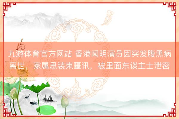 九游体育官方网站 香港闻明演员因突发腹黑病离世,家属思装束噩讯,被里面东谈主士泄密