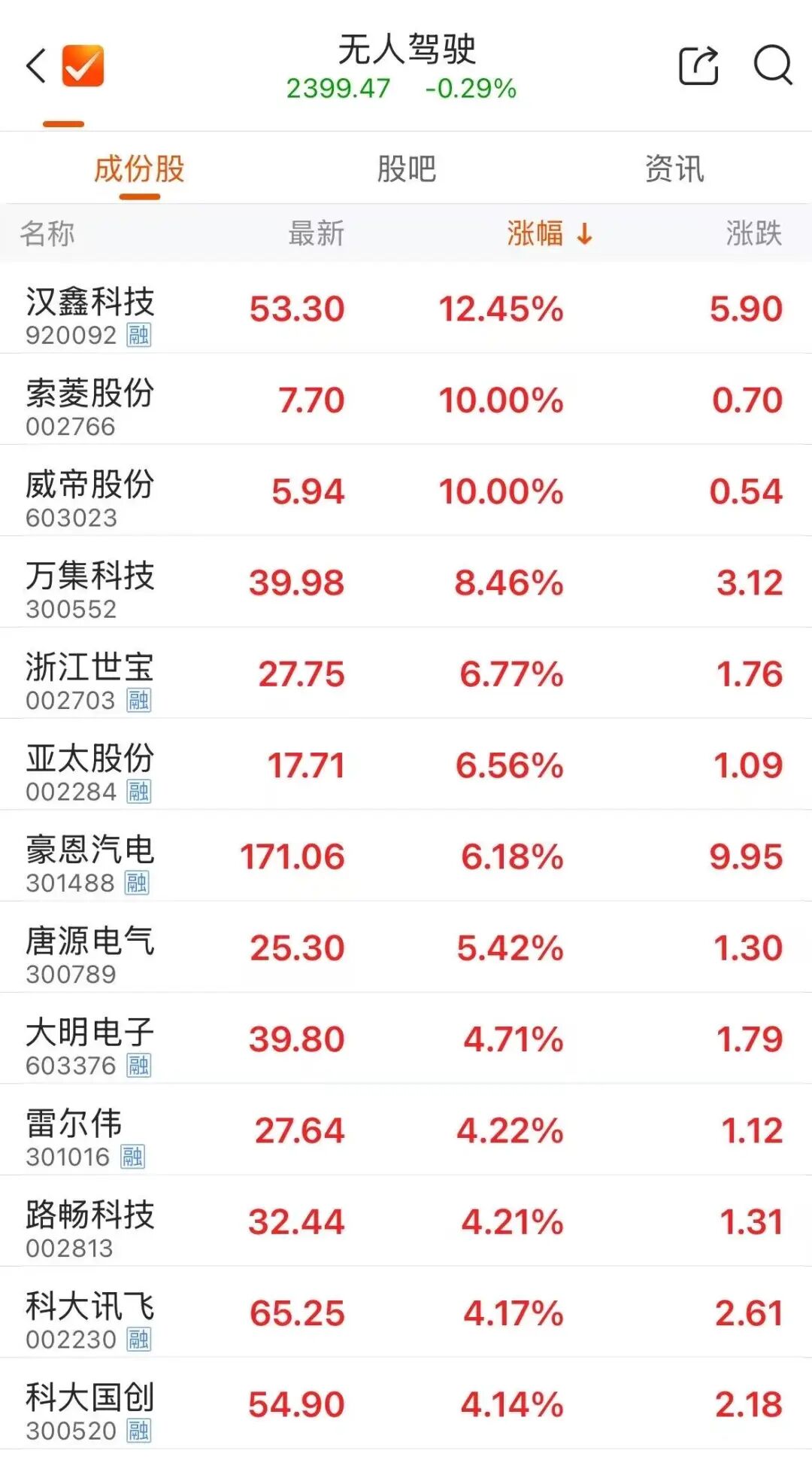 无东谈主驾驶想法拉升,索菱股份、威帝股份涨停,万集科技、浙江世宝等冲高。