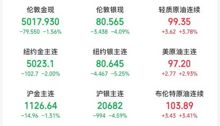 商品方面,铁心今晨收盘,伦敦银现货价钱和纽约期银主力合约大幅下落,海外油价握续高涨。